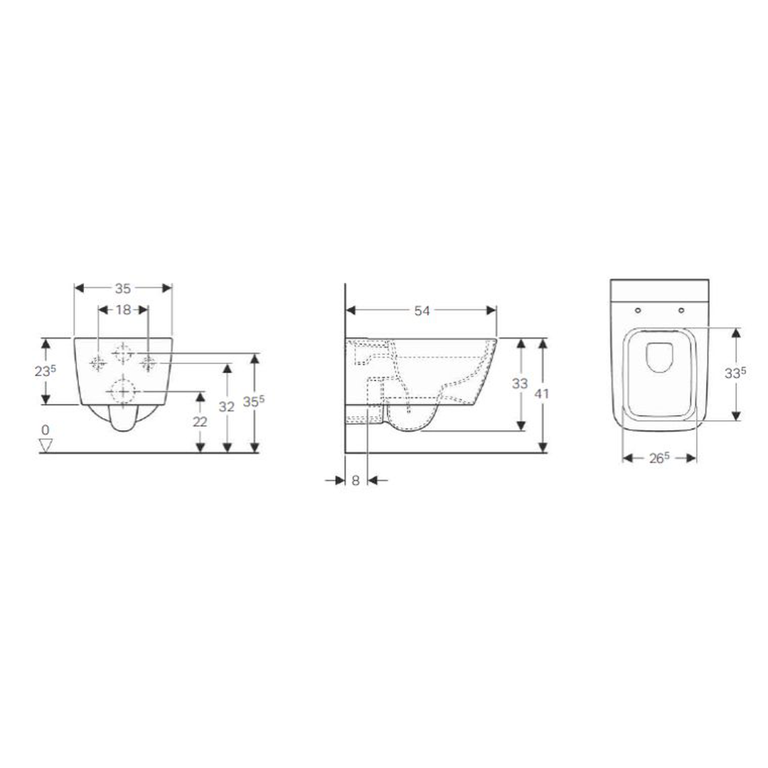 Geberit iCon Square wall-hung WC, washdown, shrouded, Rimfree: T=54cm, white