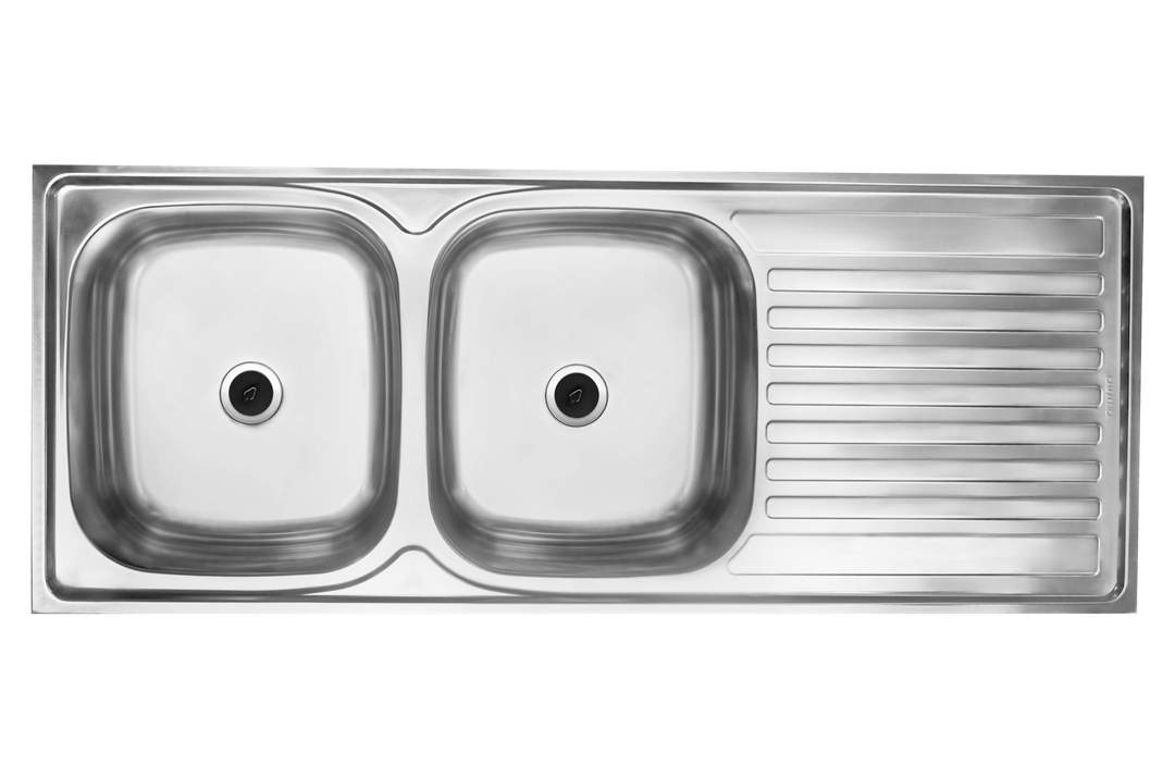 1160mm x 500mm Double Bowl Inset Sink, 2 x 90mm waste fittings